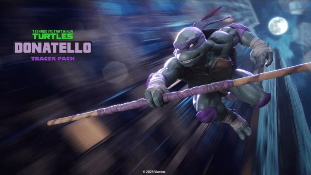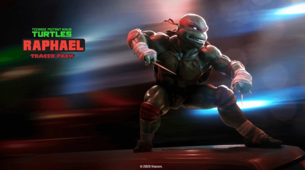 The TMNT collaboration includes four iconic Ninja Turtles: Leonardo, Michelangelo, Raphael, and Donatello. Each turtle has a unique bundle featuring themed weapon blueprints, animations, and cosmetics.