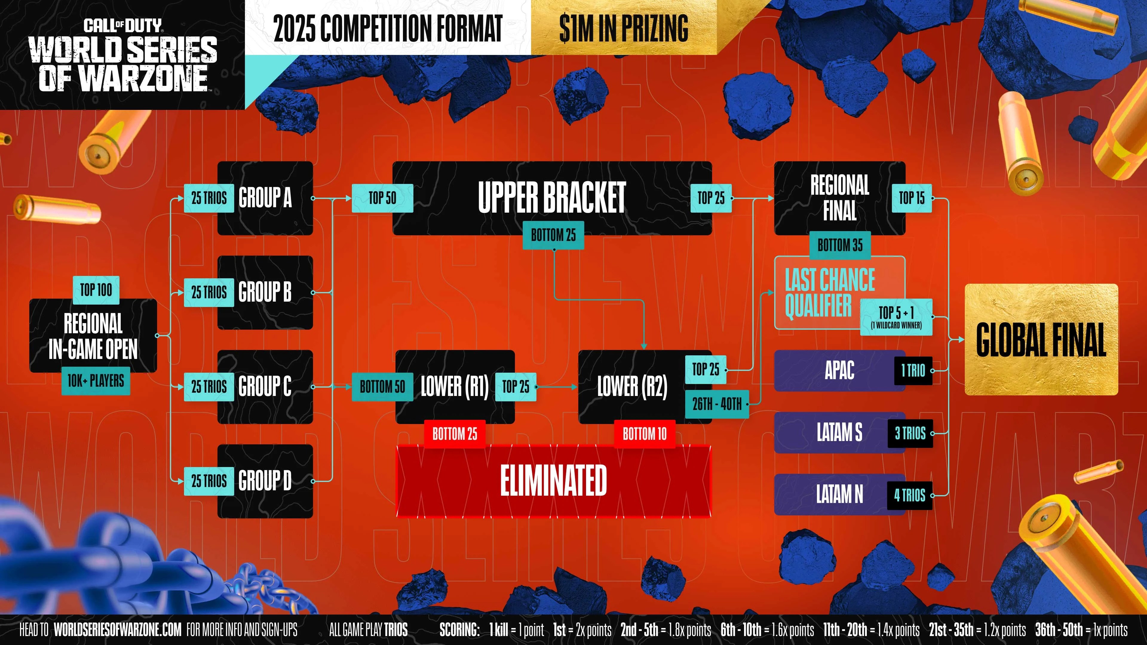 The World Series of Warzone 2025 is not limited to NA and EMEA alone. Trios from APAC, LATAM North, and LATAM South can also participate through Private Match contests.