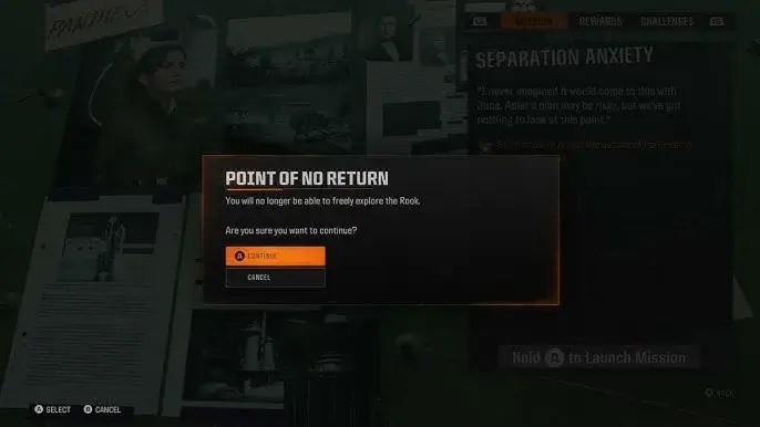 The campaign has a point of no return at Separation Anxiety. Once this mission starts, players must complete both Separation Anxiety and Checkmate in a single session to finish the campaign.