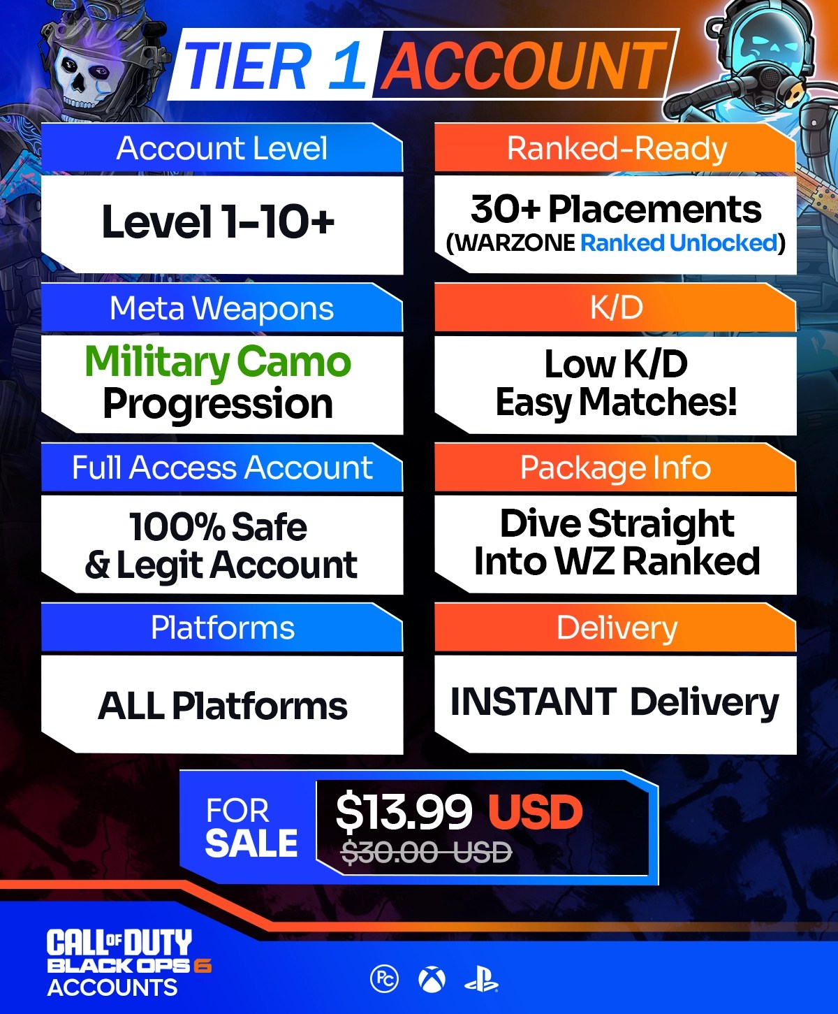 Additionally, our Warzone Accounts are fully compatible with any existing accounts you own and can be used across supported titles like Black Ops 7, Black Ops 6 and Modern Warfare 3!