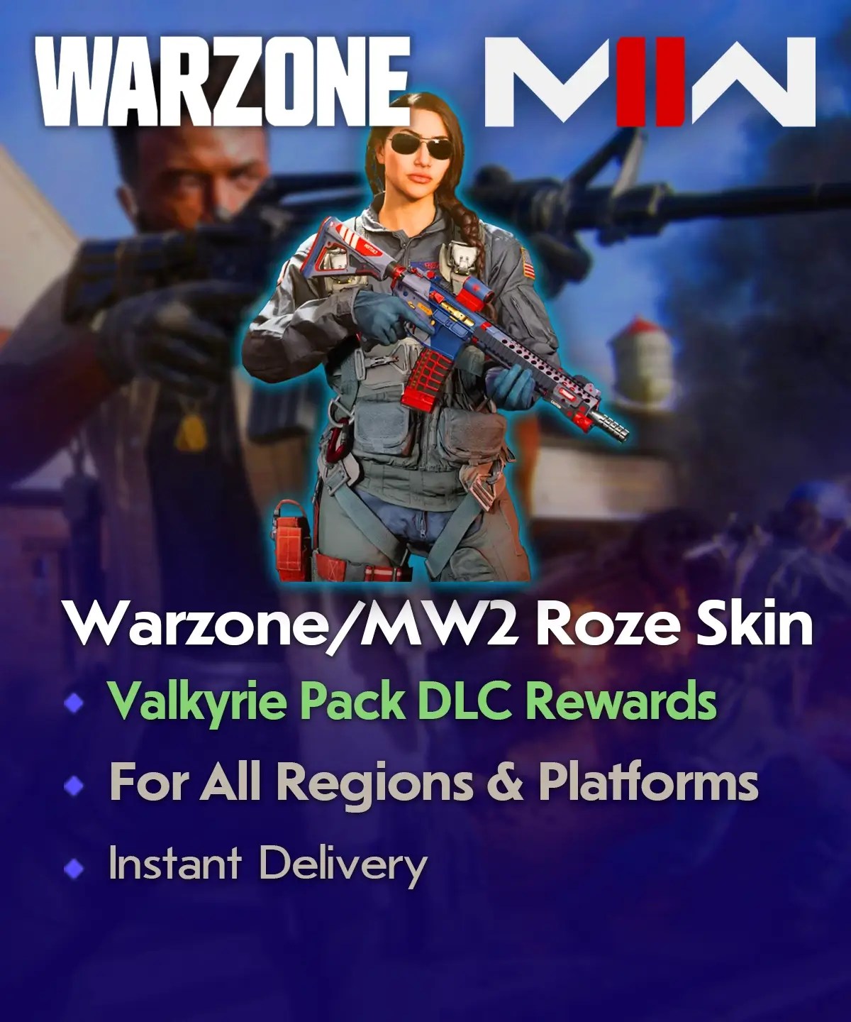 Buy Call of Duty Warzone & MW2 Roze Skin Codes and unlock all exclusive Valkyrie Pack DLC rewards! Get your GLOBAL Warzone Roze Skin Keys for Xbox, PlayStation, and PC with instant delivery!